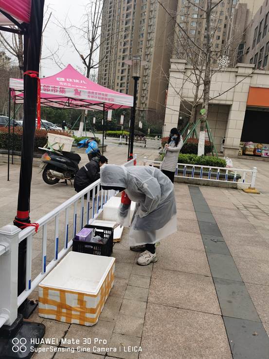 党政办公室的程潇潇老师及其丈夫李勇老师下沉的是江夏区庙山产业园梅南社区,刚到社区报到就碰到小区有一大批物资需要分发,时值雨雪天气,社区其他党员还未报到,人手严重不足的情况下,他们夫妇二人承担起了所有分发的工作,凛冽寒风中,他们把温暖送到了小区的家家户户。