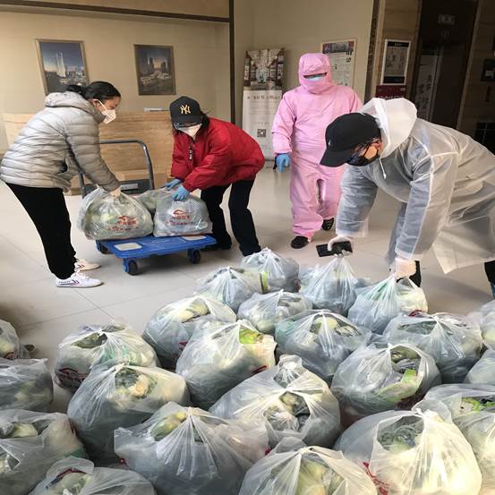 机电教研室的李晓莉老师一大早来到门岗,检查进出人员的通行证明、做好登记、测量体温,井然有序的一天又开始了。因为小区实行封闭式管理,所有的物资均放置在小区门外50米处的栏杆处,不允许外卖和送菜人员进入小区,年轻的住户会到小区门口排队领取物资,避免住户和外界人员接触;独居老人或者是家有幼儿不方便下楼的,李老师她们会亲自将物资送到各个住户家,并及时收走封闭楼栋住户门外的生活垃圾。