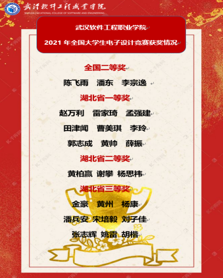 (通讯员:黎杨梅)12月10日,全国大学生电子设计竞赛成绩正式公布,在我校电子工程学院电赛指导组老师指导下,电赛参赛队获得全国二等奖1项,湖北省一等奖3项、二等奖1项、三等奖3项,是湖北省高职院校今年在该比赛中获奖级别最高、获奖数量最多的学校。