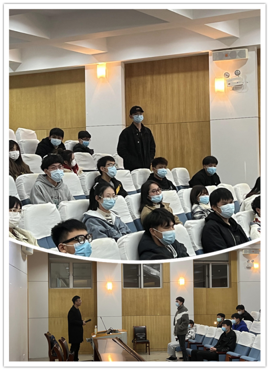 宣讲会由电子工程学院学生党支部书记李凤老师主持,她首先介绍了吴进副书记在校期间担任团支书时的工作学习情况,毕业时的就业创业情况,号召大家向他学习。随后吴进副书记通过对个人成长经历的分享,人生转折点的选择,勉励与会同学在人生的各各阶段认真学习,学会吃苦;通过自己扎根基层在脱贫攻坚、武汉军运会外事接待、疫情防控、乡村振兴等方面的经历分享了实践见真知和全心全意为人民服务的初心。特别是聊到疫情防控工作时他热泪盈眶,他说,为什么他眼中常含泪水,因为他热爱这片土地。这句话就是他回到家乡建设家乡的初心,他的精神感染着在场的每一位同学。