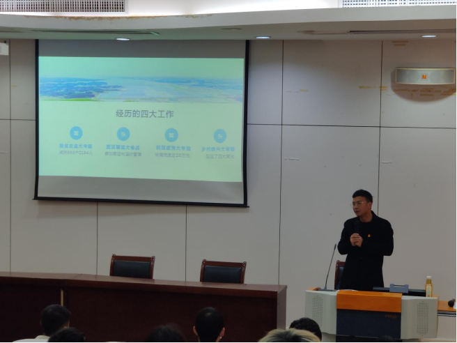 宣讲最后吴进副书记和现场入党积极分子互动,同学们提问,如果回到过去,是否会选择复读或者专升本?如果回到过去是否还会选择去基层去农村?吴进副书记回答学习是一个人进步永远的动力,即使不能回到过去我现在也在努力学习,马上结束自考本科后继续努力考研;但是提升学历并不是为了摆脱什么而是为了更好的扎根基层服务人民实现乡村振兴,物质生活并不是一个人的全部,精神生活才是我的追求。吴进副书记贴心地为提问的同学们送出精心准备的书籍,勉励同学们“读万卷书行万里路”。