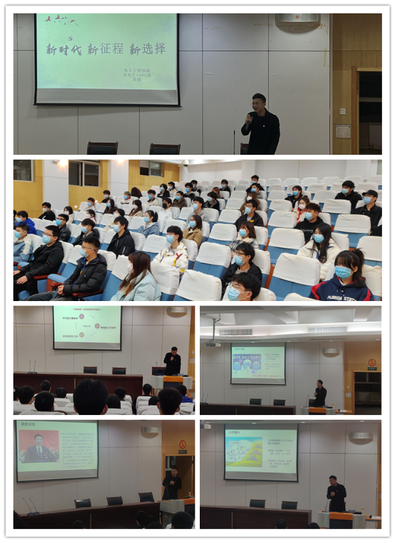 为全面贯彻落实学习党的十九届六中全会精神,按省教育厅要求开展“百名支部书记进高校”宣讲活动。2021年12月21日晚6时,电子工程学院学生党支部特邀请武汉市江夏区第六届党代表、武汉市江夏区湖泗街张林村党支部吴进副书记在学术楼三号报告厅为入党积极分子作《新时代 新征程 新选择》的主题宣讲。