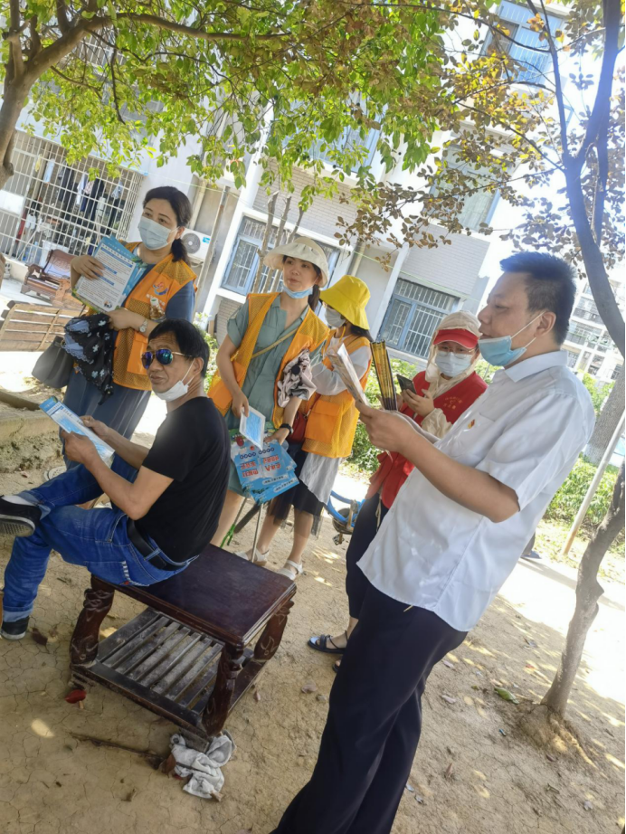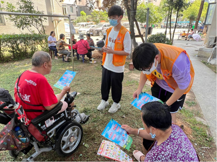 到达社区后,参加活动的师生分成了两组,按不同的路线开展清洁卫生和宣传工作,其中一组由社区书记汪静带领,对社区内的垃圾进行清理,并向社区内乘凉的老人们发放接种疫苗宣传单,宣传老年人接种疫苗的必要性和国家关于接种疫苗的免费政策,劝说没接种的老人们尽快接种;另一组则由社区工作人员带领,沿社区外围清理“牛皮藓”、“白色垃圾”,并沿途向路过的老人宣传接种疫苗。面对30多度的炎热天气,大家挥汗如雨却热情不减,活动中遇到听力不好的老人,大伙儿都能够耐心的讲解...