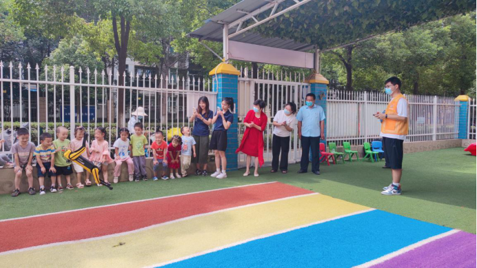 在社区幼儿园开展科普活动的现场,我院青年教师志愿者遥控指挥下一只亮眼的黄色机器狗带来的精彩纷呈的展示,现场不时响起一阵阵欢声笑语。刚开始,小朋友们还有点怕生,当机器狗跑到他们面前“问好”时,大家的注意力马上被吸引过去,随着机器狗不断“卖力表演”,小朋友们彻底被它可爱的样子征服了......