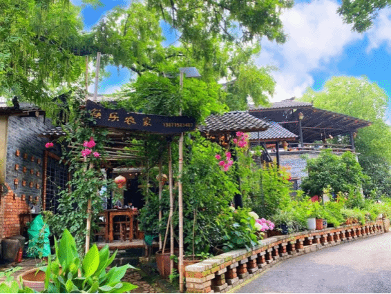 午饭后,漫步于小朱湾,古色古香、错落有致的农家院落,掩映在红花绿树之间,黑瓦青砖的土泥墙之上。干净的水泥路面四通八达,漫步在这乡村的小路上,感受着荆楚文化古典韵味的同时,又沉浸于现代文明乡村的氛围之中。暂时远离城市的喧嚣、工作的繁忙,享受这一刻的安静舒适。