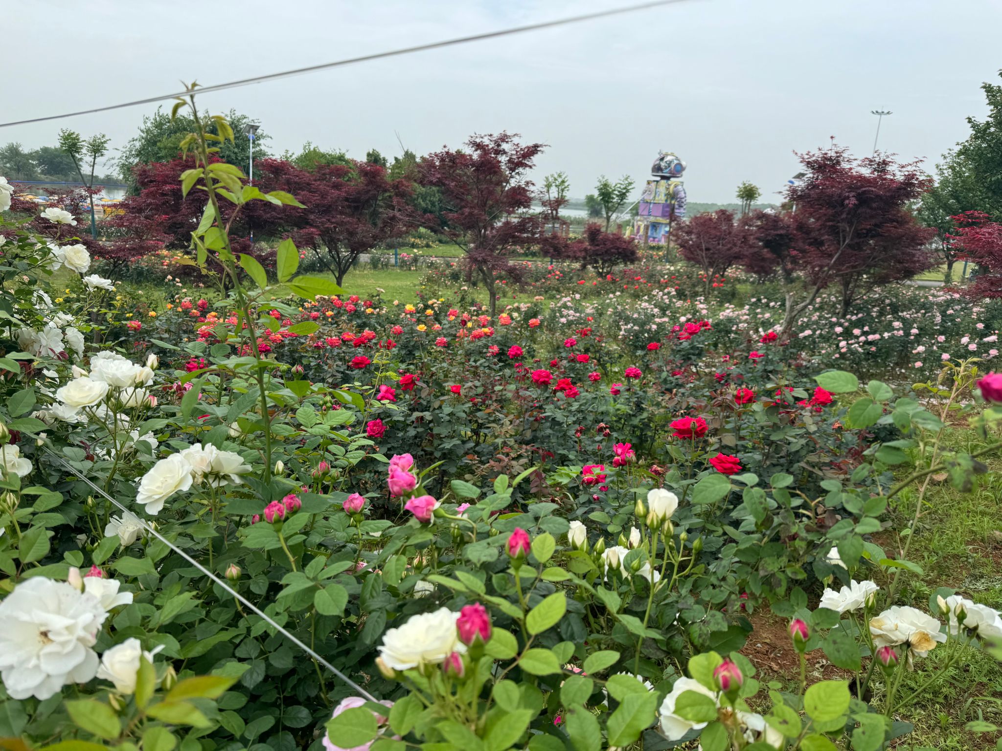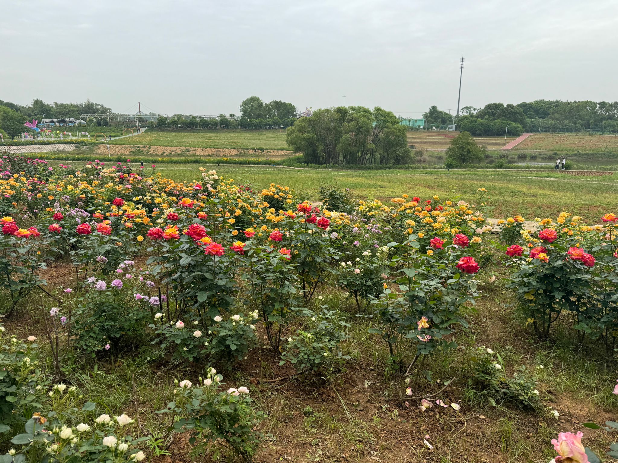 一下车就进入了花的海洋,五颜六色的花儿层层叠叠,将园区环绕。衣香花气熏人醉,蛱蝶蜂儿扑面来,一片盎然生机。