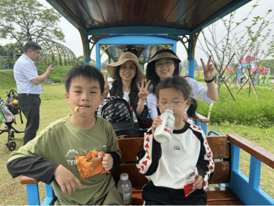 乘坐上观光小火车,五彩斑斓的花朵在阳光的照射下熠熠生辉,花儿随风摇曳,散发出迷人的芬芳,大家陶醉其中,赞美声不绝入耳。