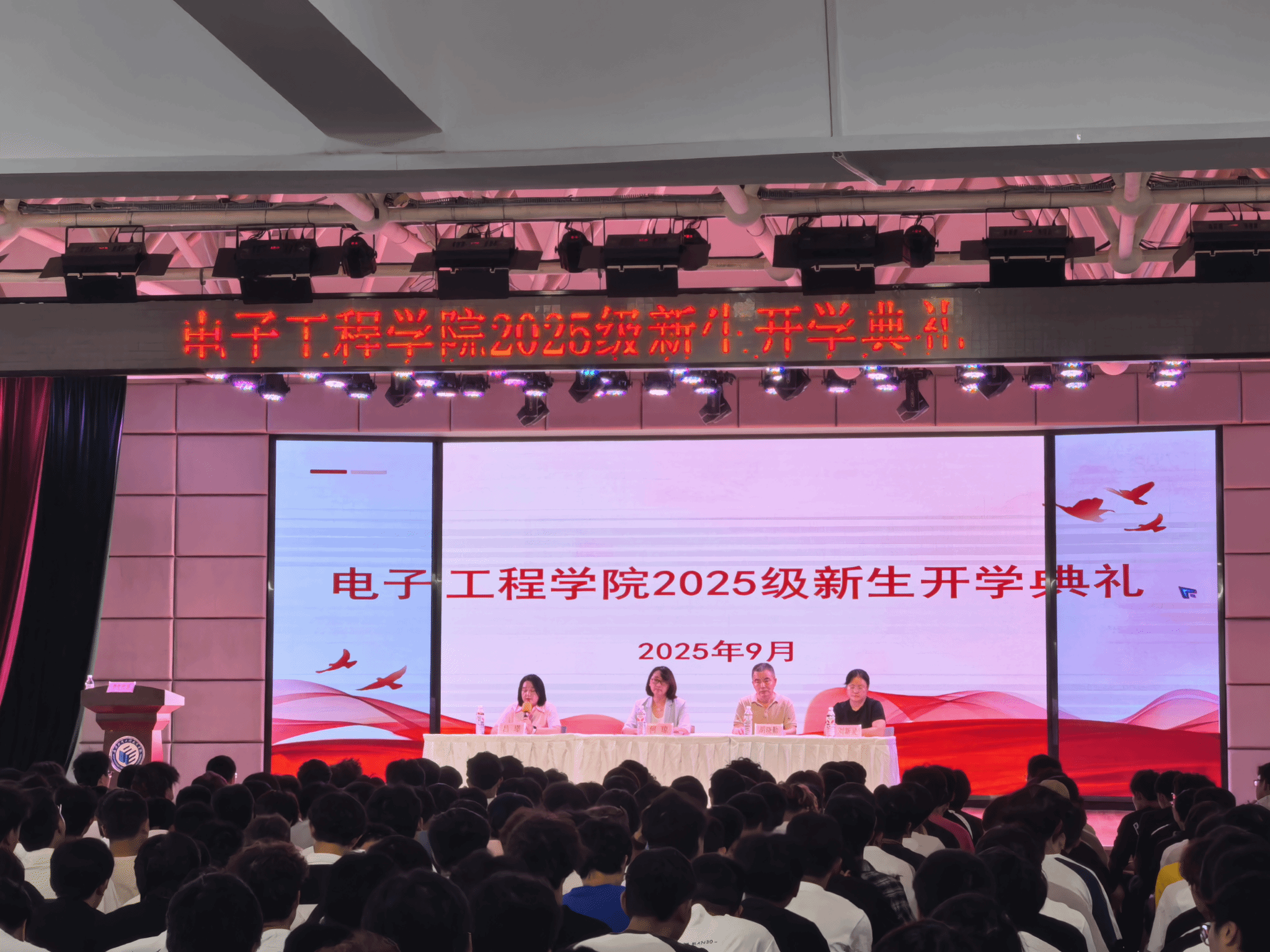 9月28日上午,电子工程学院2025届新生开学典礼在综合楼4楼多功能厅隆重举行。学院院长何琼,副院长刘新灵、胡晓勤,党总支副书记吕璟、辅导员代表、教师代表、优秀毕业生代表以及全体2025届新生齐聚一堂,共同见证这一庄严而充满希望的时刻。典礼由党总支副书记吕璟主持。