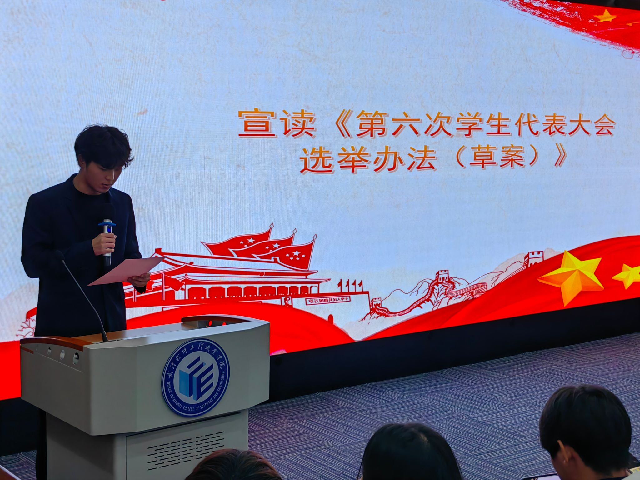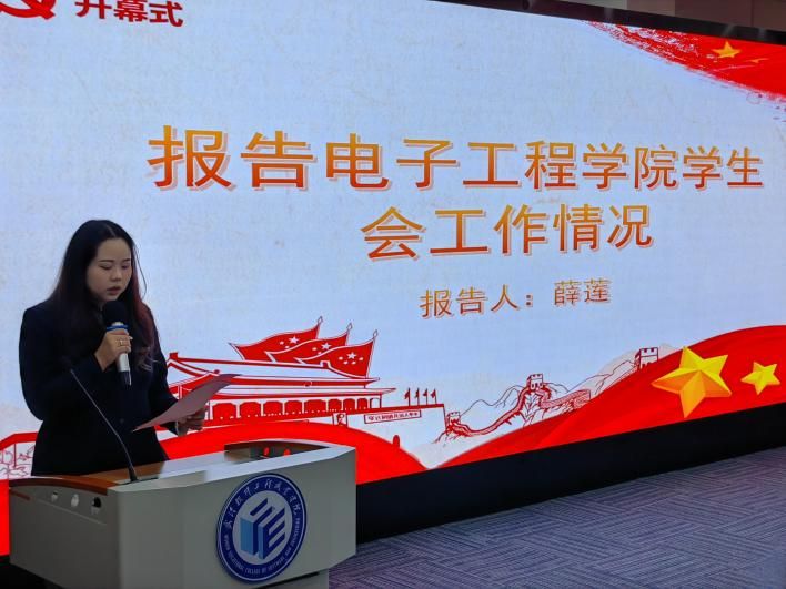 本次大会由陈菲菲同学主持。电子工程学院党总支副书记吕璟、学生科科长郭健湘、团总支书记熊倩倩应邀出席,与全体代表共同见证这一具有里程碑意义的青春盛会,充分体现了学院对学生自我管理、自我服务工作的高度重视与深切关怀。
