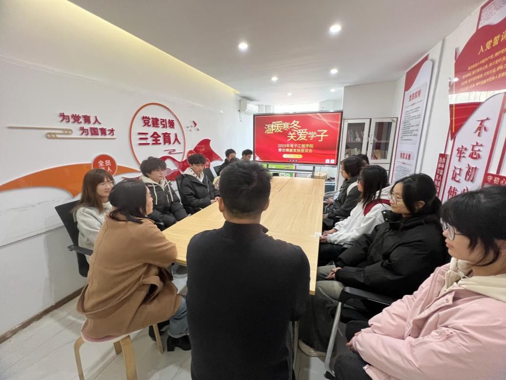 (通讯员徐典)随着冬季来临,气温持续走低,为切实保障家庭经济困难学生的温暖过冬,体现学校对广大学生的关心与关爱,电子工程学院于12月17日在“一站式”学生社区召开家庭经济困难学生座谈会并启动“冬日送暖”寒衣棉被专项资助活动,向符合条件的家庭经济困难学生发放棉被,用实际行动传递温暖与关怀。