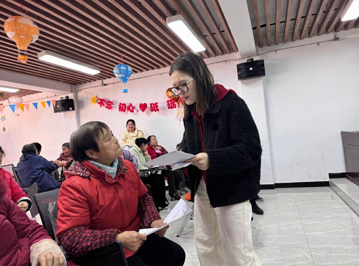 活动伊始,学院党总支副书记吕璟向社区老同志致以诚挚问候和新年祝福,并简要介绍了此次活动的初衷:一方面将学院2026年新春公益市集全部收益用于购置慰问物资,传递组织关怀;另一方面,依托学生科研项目《智能便溺柔芯守护》,深入倾听老年群体在日常照护中的真实需求,推动科技真正服务于民、扎根于民。