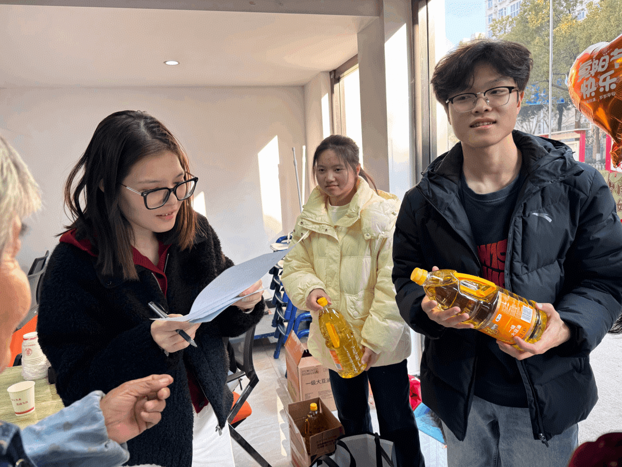 活动尾声,学院为参与座谈的20位高龄老人代表发放了由新春公益市集全部收益专款采购的慰问品,并合影留念。在亲切互动与真挚交流中,一场“党建+科研+服务”深度融合的生动实践悄然落地。