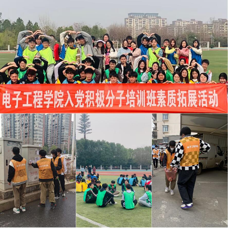 为培养学生干部团队合作意识,认清自我价值,提高实践能力和创新能力,电子工程学院学生党支部在党总支的指导下开展入党积极分子素质拓展活动。2023年3月2日13:30,活动在学校操场拉开帷幕,电子工程学院党总支书记李少勇、副书记王祎、学生党支部书记李凤也在现场为同学们加油鼓劲。全体队员在教练的带领下,分成6个小分队,首先展开了选队长、设计队名、队伍手势和口号等预备环节。随后在教练的指导下,各队长带领本队队员进行了热闹非凡的五个项目:我们是最棒的团队;七巧板;神笔马良;冰壶比赛;99秒挑战。此次素质拓展活动,激发了同学们自身的潜力,增强了自信心和团队意识,认识自我超越自我。活动在同学们斗志昂扬激情澎湃的呐喊声中划下圆满句号。