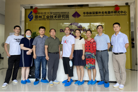 紧接着,杨玲玲一行受到华中科技大学教授、深紫外光电器件平台项目负责人陈长清博士及其研究团队的热情接待。在座谈会上,汪洋老师介绍了集成电路技术应用专业的发展现状,在集成电路产业飞速发展的当下,希望与企业达到互惠互赢;陈长清教授介绍了企业的概况、深紫外LED行业现状以及复工复产情况。双方就集成电路技术应用专业学生人才培养、产教融合切入点以及学生就业前景等方面开展了深入讨论。