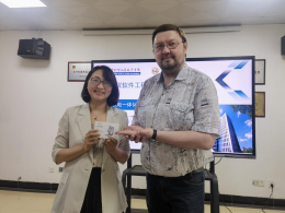 会上,机电一体化教研室主任盖超会对中俄双方互认课程进行了介绍,机电教研室教师与亚历山大·弗拉基米罗维奇·巴库托夫在机电一体化专业(中俄合作班)的教学上围绕“教学创新、课程设置、学生管理”等专题进行了深入的研讨。亚历山大·弗拉基米罗维奇·巴库托夫教授也表示,这次来武软,看到干净整洁的校园、先进的教学硬件设施、精神饱满的学生、一派朝气蓬勃的景象令他印象非常深刻,他愿意在课程设置、教学计划上提供更多支持。最后,何琼院长向亚历山大·弗拉基米罗维奇·巴库托夫赠送了由我院学生自制的激光雕刻品。