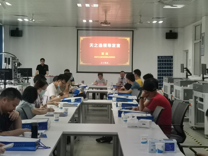 武汉天之逸科技有限公司董事长董彪为开班致辞,首先对各位远道而来的老师们朋友们表示热烈的欢迎,同时回顾了与电子工程学院合作的悠久历史,最后对全体学员提出了美好期许,希望各位学员能够珍惜学习机会,学有所得,收获满满。武汉天之逸科技有限公司技术总监杨欢向培训班的学员们介绍了培训事项安排。开班仪式最后,全体嘉宾移步至电子工程学院门前合影留念。