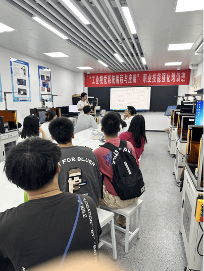 本次培训内容分为两部分:机器视觉部分由我院两次指导学生获得全国职业院校技能大赛“机器视觉系统应用”赛项一等奖的指导教师陈元凯主讲,培训采用工业视觉硬件平台以及Kimage平台软件采用模块化的实现方式,提供了相应的二次开发接口,可以让用户实现添加功能模块,实现对物料的图像采集、图像处理、图像识别、缺陷检测、手眼标定以及物料搬运等操作,人工智能部分利用我院已有人工智能设备开展培训,培训内容包括Magician基础应用、Magician通信协议、Arduino人工智能、魔术师底盘小车自动驾驶、优图人脸识别和指纹识别等。