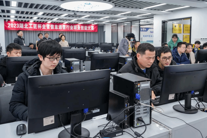 2024年1月14日,由湖北省通信管理局、湖北省人力资源和社会保障厅、湖北省总工会、湖北省人民政府国有资产监督管理委员会联合主办2023年“湖北工匠杯”技能大赛——全省信息通信行业职业技能大赛广电和通信设备调试工赛项在我校顺利举行。来自武昌职业学院、长江职业学院、武汉软件工程职业学院、烽火通信科技股份有限公司、武汉烽火技术服务有限公司等多家单位分别参加了学生组与职工组比赛。