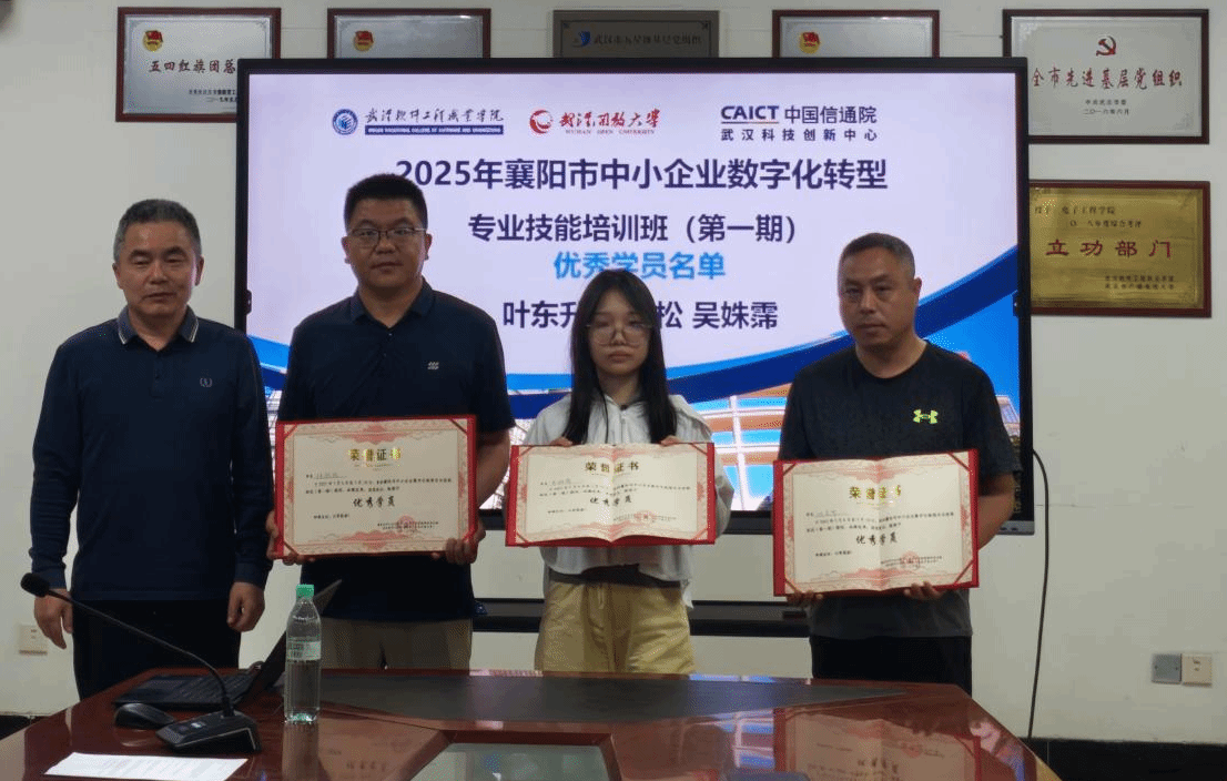 (通讯员:李梦 卢高洁)2025年5月10日,由襄阳市经济和信息化局主办,中国信通院“智能+学院”、信通院(武汉)科技创新中心有限公司、武汉软件工程职业学院承办的襄阳市中小企业数字化转型专业技能培训班(第一期)在武汉软件工程职业学院顺利结业。来自襄阳市多家企业的24名学员圆满完成了为期5天的研修课程,并全部通过考核,可以获得工信部工业互联网编程与调试工程师(中级)认证证书。