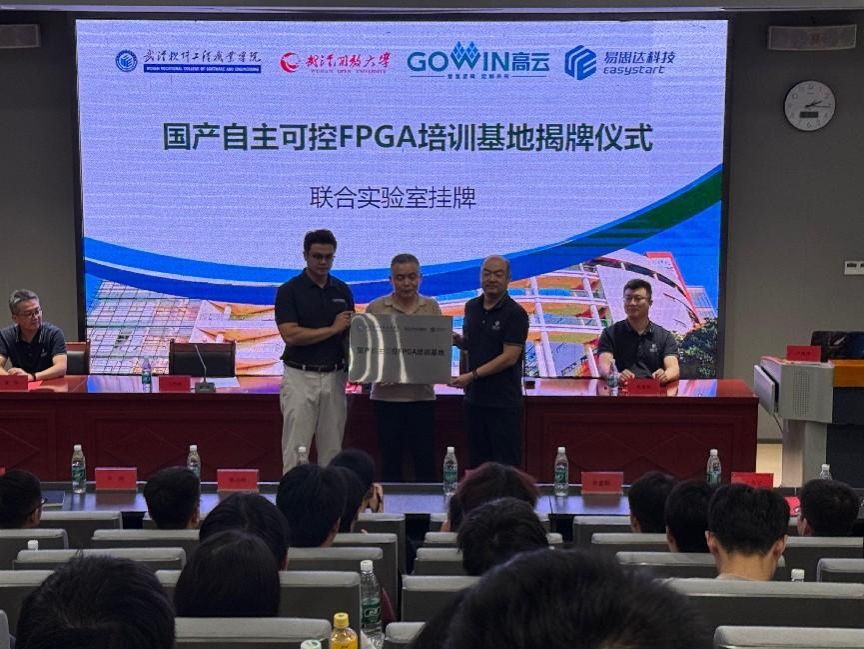 2025年10月12日,一个标志着产教深度融合的重要时刻——国产自主可控FPGA培训基地揭牌仪式暨2025全国大学生FPGA创新设计竞赛高云赛道赛前培训,在我校隆重举行。本次活动由武汉软件工程职业学院携手国产FPGA领军企业广东高云半导体科技股份有限公司及产教融合实践者武汉易思达科技有限公司共同呈现。
