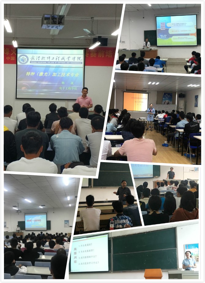 25日下午我院开学典礼后,我院就进入了2018级新生入学教育环节。本次入学教育主要包含三方面内容:专业教育、教学相关类教育、思政与学管教育。我院各教研室主任亲自上阵为各专业新生进行专业教育,各位老师主要结合专业特点分别从各专业的特点特色、办学特色、培养目标、教学计划、课程设置、就业方向、升学情况、校企合作、发展现状及发展前景等方面进行了系统全面的阐述,并重点展示了各专业的技能竞赛概况及社团已取得的成果。值得一提的是,我院光电技术应用专业在教研室主任黄焰老师、邓峰老师及辅导员梁暗红的带领下,将72名新生带到昱升光电企业进行现场专业认知,邀请企业代表为我院新生介绍企业设备及发展情况,极大的提高了新生对专业学习的兴趣和积极性,创新了专业教育的内容及形式。在教学相关类教育环节,我院邀请了图书馆的王妍老师从图书馆的概况及如何正确使用借阅系统方面为新生做了专场培训,王老师还精心准备了《读者手册》现场为新生发放;院教务科刘新灵科长主要对新生进行了教务管理系统的使用培训及相关学籍管理规定的解读;各辅导员也精心准备了专套本宣讲PPT,第一时间向新生介绍了我校的专套本项目。在思政与学管教育方面,我院除组织新生参加学工组织的几场讲座外,还邀请保卫处张进为我院新生做了安全方面的专场教育;此外,各新生班辅导员着重对新生进行了走进校园(认识学校)、行为规范教育、《学生手册》学习、政策法规、校纪校规等方面的教育。