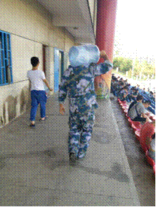 下午三点左右,电子工程学院三营一连的桶装水眼看就要喝完了,我报告辅导员的时候,辅导员正准备联系送水工作人员前来送水,被刚好在一旁的团长听到了,指着播音室的方向对我们说:先拿这里两桶水用!我们都知道,播音室的水是所有教官们用的。团长为了不让同学们渴着,先将教官们要喝的水挪给学生了。感谢之余我拎起来一桶水,正准备再喊小伙伴来帮忙扛一桶时,团长二话不说,扛起了另外的一桶水跟着我一起将水送到了我们的训练方阵。没想到平时严肃的团长竟是这么可爱的人,看着他扛水的背影,我内心不禁感动了一把,立志要做像他一样可爱的人。
