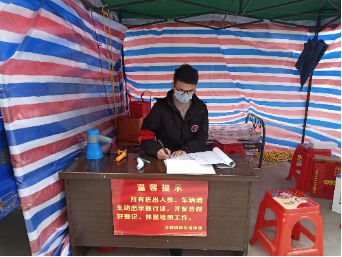 他主要的工作是每天到村里给村民测量体温,并做好统计工作,同时还要对村民进行疫情防控知识宣传,及时了解村民家中状况,在村口张贴相关防控宣传海报,之后还要到村口卡点负责交通管制,守在卡点管理村内人员进出,对出示通行证的村民进行实时核查,并统计其体温做好数据记录,尽管工作时间长也很辛苦,但他知道这项工作却是防控疫情中非常重要的一环,不容有闪失,因此有时面对村民因进出管控太严格而抱怨时,他总是耐心地给大家解释这项工作的必要性。在学校开设网课后,在认真学习的同时,他仍每天坚持参与防控志愿服务工作。