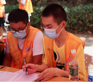 001号新生赵苗清投身迎新志愿工作 国赛一等奖王达松、蒋乐瑶在学院报到处合影