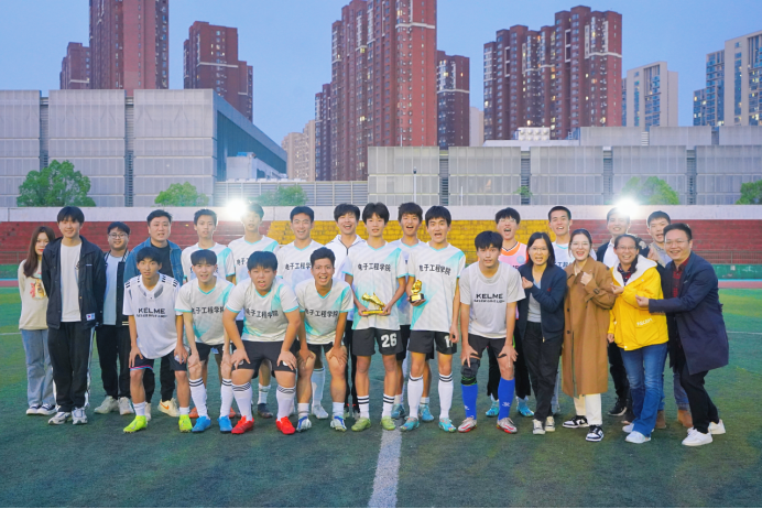 电子工程学院足球队队员们对运动的热情和信心,为每一个热爱体育运动的同学献上了一份完美答卷,也有助于我院形成人人参与、个个争先的体育氛围。我们相信,一支齐心协力的队伍往往是战无不胜的。未来我院也会继续发扬团结协作精神,凝心聚力,师生同心,点燃激情!