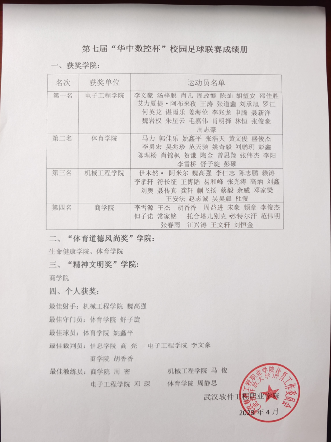 (通讯员:杨素贤 熊倩倩/摄影:贡海鹏)绿茵场地,足球健儿争亮风采。2023年4月26日下午,我校第七届“华中数控杯”校园足球联赛落下帷幕,我院足球队选手们最终突破重围,取得了冠军的骄人成绩!