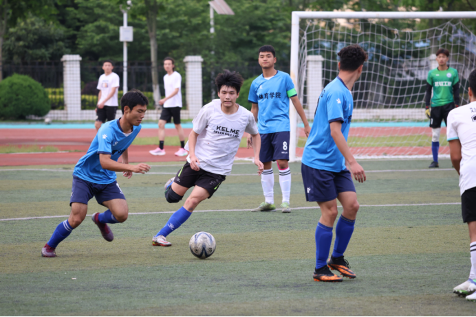 天道酬勤是对他们最好的诠释,努力和团结是他们的代名词。“流水不争先,争的是滔滔不绝”。因受2022年末疫情影响比赛推迟,而大三原参赛队员外出顶岗实习,比赛人员出现缺口不得不面临组队替换的问题。为保证队伍配合度,在开赛前的一两个月里,我院足球队员们几乎每天都在训练,周末也无不例外。正因如此,他们不仅在小组赛中拿到了四场全胜的战绩以小组第一的成绩成功出线,并在淘汰赛中两场完胜,未丢一球。在六个月的训练与比赛中,球员们的足球水平大大提升,彼此之间的情谊也更加深厚。