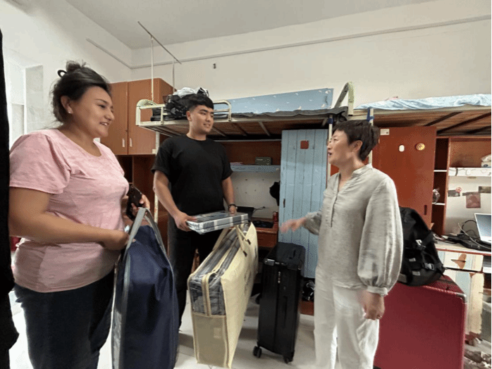 (通讯员 陈晓航)在2023级新生入校之际,为了让少数民族新生切实感受到学院的关怀,尽快融入新生活新环境,9月13日下午,电子工程学院王祎书记、学生科科长王丽、团总支书记熊倩倩及全体新生辅导员等人走进学生公寓8号楼、13号楼,前去看望和慰问6位少数民族新生,并为他们送上了生活用品等“关怀大礼包”。