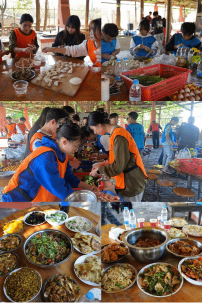 中午时分,紧张激烈的飞盘活动结束后,一场别开生面的埋锅造饭开始了。师生们纷纷大显身手,一展厨艺,充分发挥团队协作精神,生火、洗菜、烹调、包饺子,都忙得不亦乐乎。经过两个小时的辛勤劳动,师生们做出了丰富多样的菜肴,大家都吃得津津有味,其乐融融,成就感十足!“通过此次拓展活动,我们不仅获得了竞技运动带来的充实快乐,更深刻体会到了团队精神的重要性。”“青马工程”班骨干学院王家兴表示,通过这次活动契机有效地增进了学生干部间的沟通交流,增强了大家的凝聚力和向心力。
