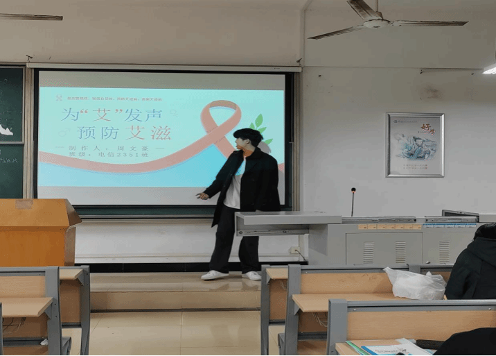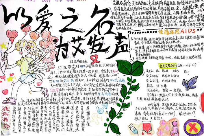 学院心理联络员对各班心理委员进行培训后,心理委员随后在各班积极开展防艾主题班会。通过心理委员的宣讲,让同学们了解艾滋病的基础知识及防控政策,通过观看防艾视频、故事分享等方式使同学们更加深入地了解艾滋病的相关知识。活动最后,同学们纷纷拿起画笔,将自己对艾滋病的了解通过手抄报的形式展现出来,既加深了自己对艾滋病的了解,也对其他师生起到了宣传的作用。