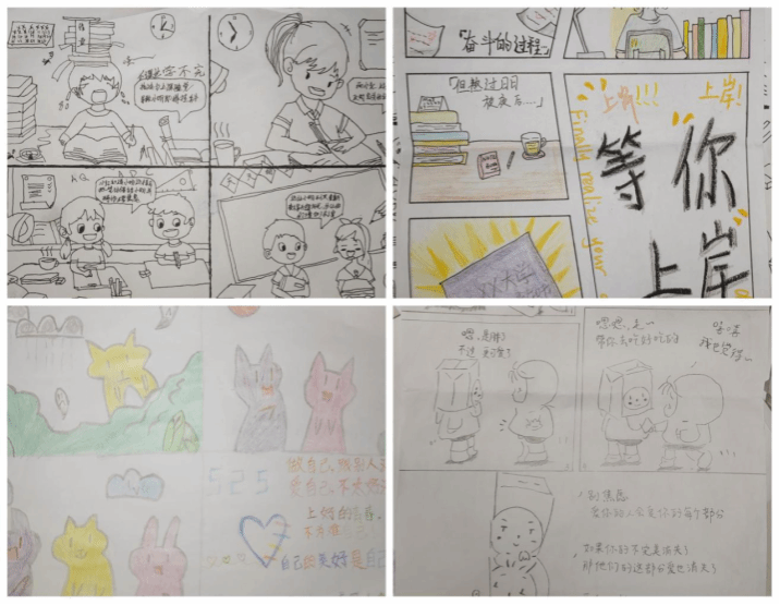 心理漫画是心理状态的外在影像。同学们在创作的过程中,释放情绪,自我治愈。引导学生树立正确的世界观、人生观和价值观,帮助同学们在绘画过程中自我探索,普及心理健康知识的同时,营造了良好和谐的校园氛围。
