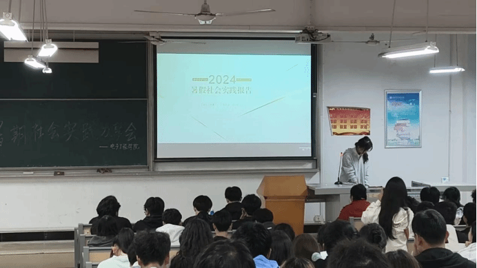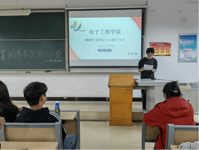 (通讯员:陈晓航 邹国盛 摄影:陈菲菲 邓佳欣 宋丽萍)为深入学习贯彻党的二十大、二十届三中全会精神,鼓励大学生积极参与社会实践、锤炼本领、担当作为,2024年10月30日晚,电子工程学院在2325教室举办了暑期社会实践分享会。此次活动由李游同学主持,来自各年级的代表们分享了各自暑期社会实践的经历见闻,大一年级百余名新生到场参加本次活动。