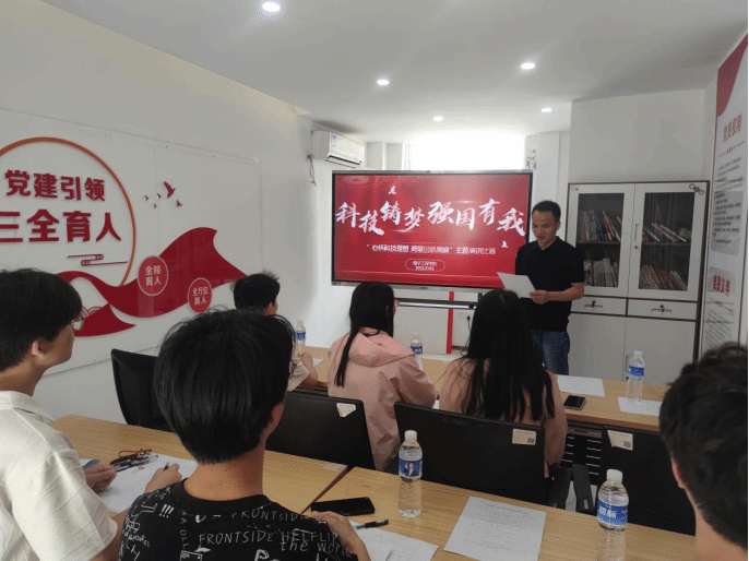 本次比赛紧扣“科技铸梦 强国有我”主题,8名参赛选手立足专业特色,结合中国科技发展历程与个人成长感悟,以生动的语言、鲜活的事例展开激情演讲。选手们或讲述“北斗导航”“天眼探空”等大国重器背后的奋斗故事,或分享专业学习中攻克技术难题的实践经历,或展望人工智能、芯片技术、科技助农等前沿领域的未来图景,展现了新时代青年学子胸怀“国之大者”、勇担科技报国使命的坚定信念。学生科科长郭健湘及5名辅导员从主题内容、语言表达、现场感染力等方面进行综合评分,现场氛围热烈。