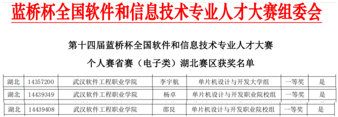 电子工程学院学生获得第十四届“蓝桥杯”湖北省省赛多个奖项